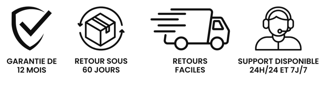 Nous offrons une garantie de retour facile en moins de 24H pour que vous puissiez acheter en toute tranquillité. Si le produit ne vous convient pas, vous pouvez effectuer une demande de retour rapidement et sans stress. Votre satisfaction est notre priorité. 😊